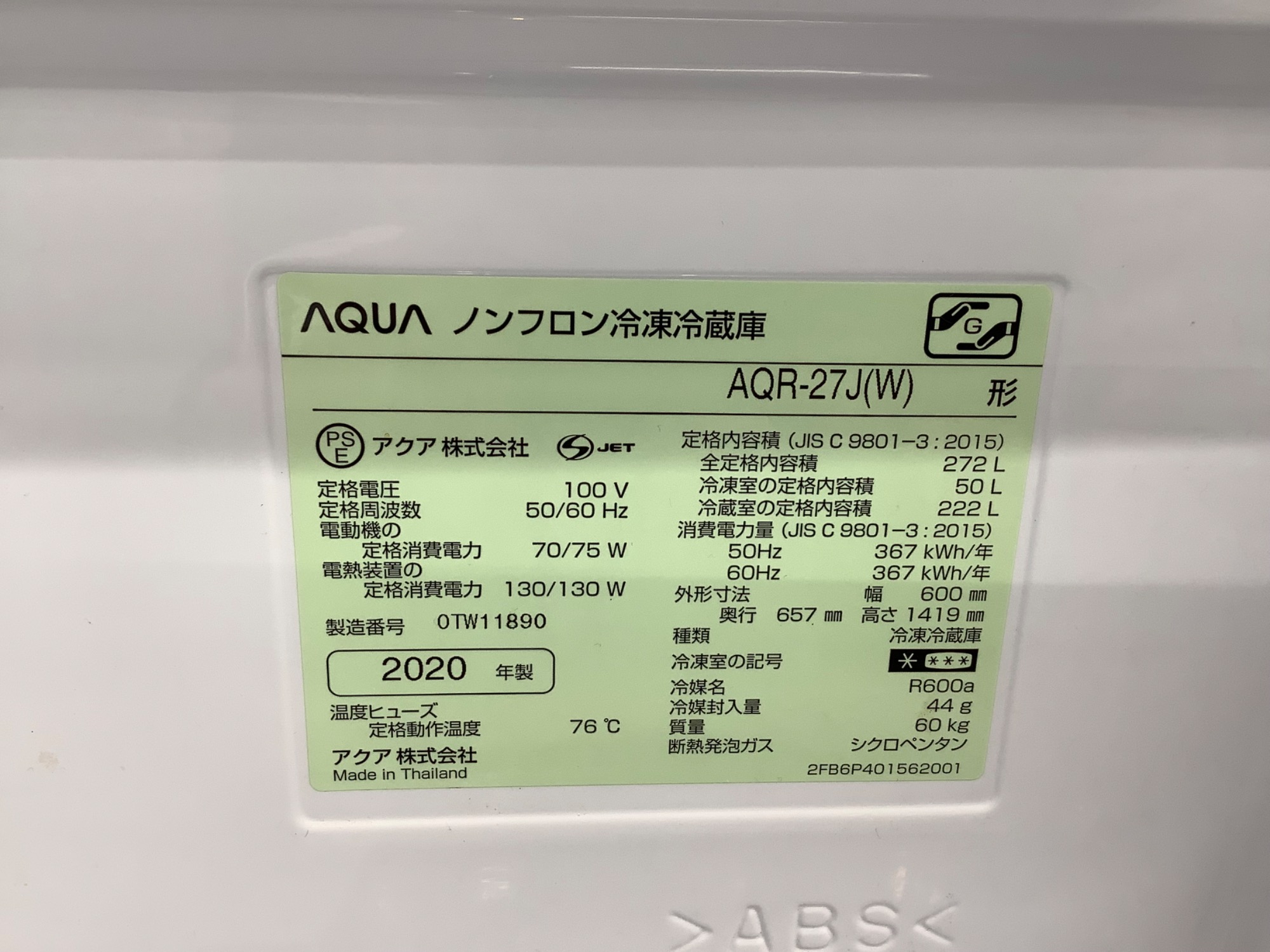 製造年数:2020年製