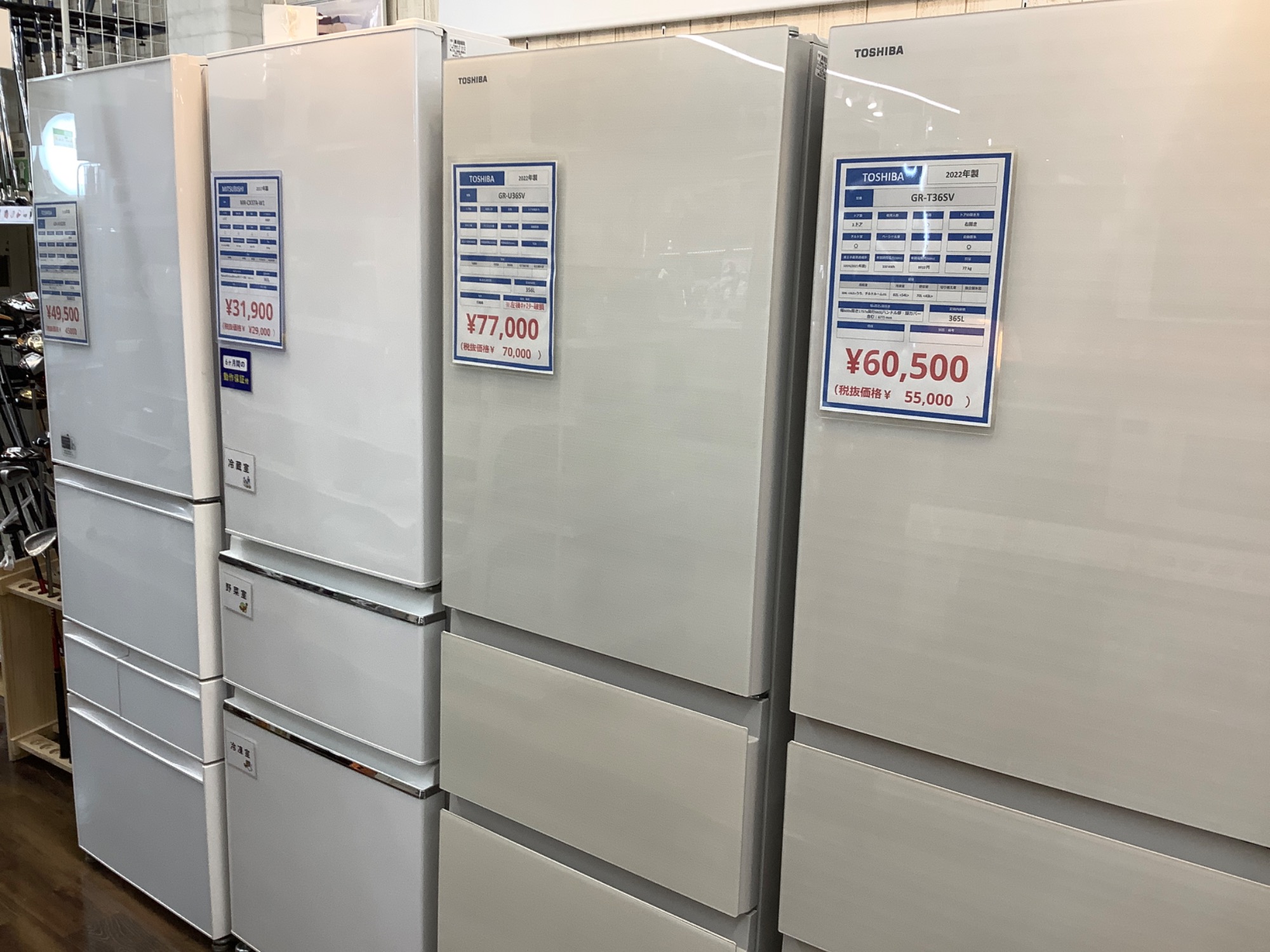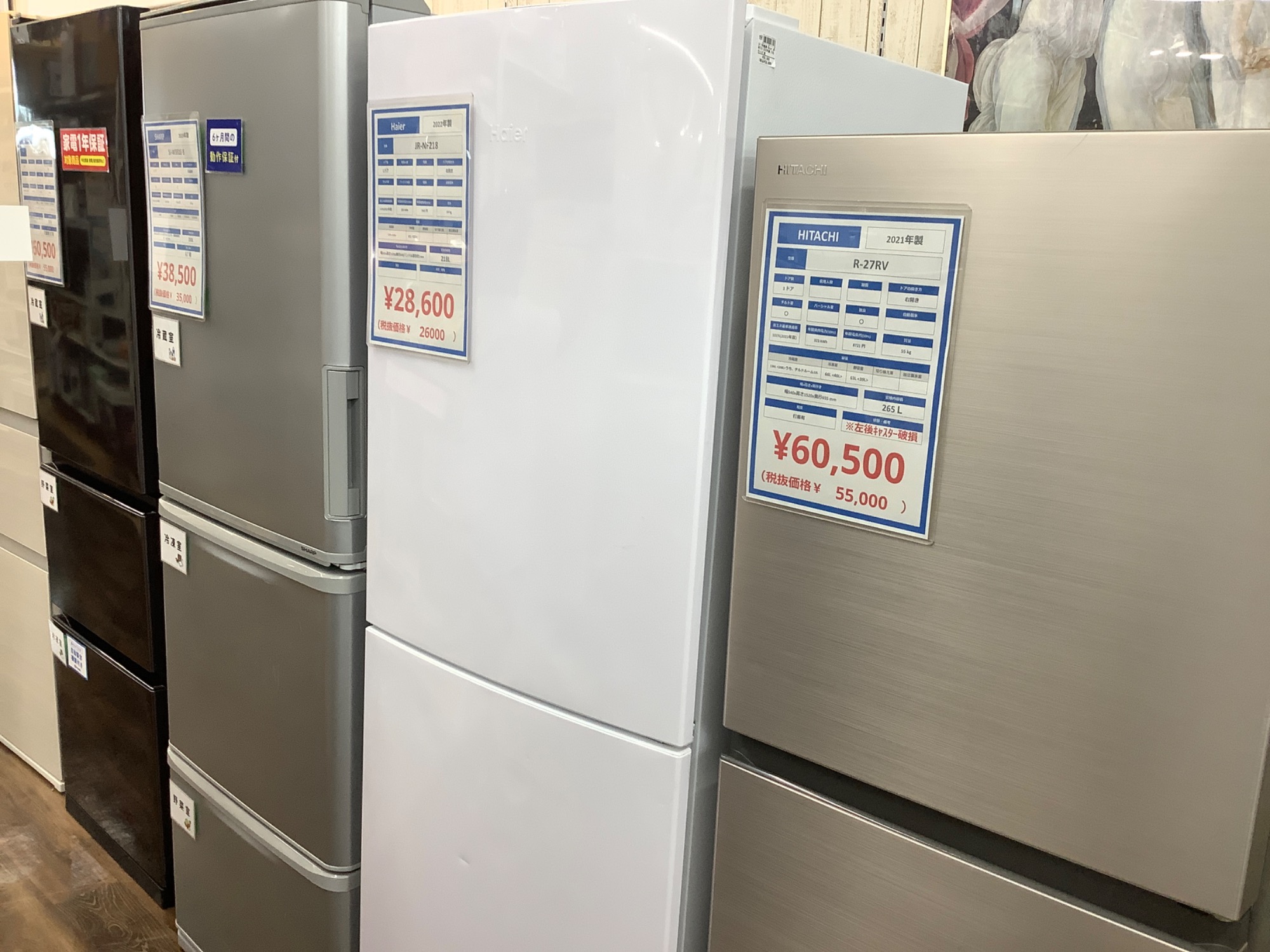 野田店では単身からご家族様に応じた冷蔵庫を