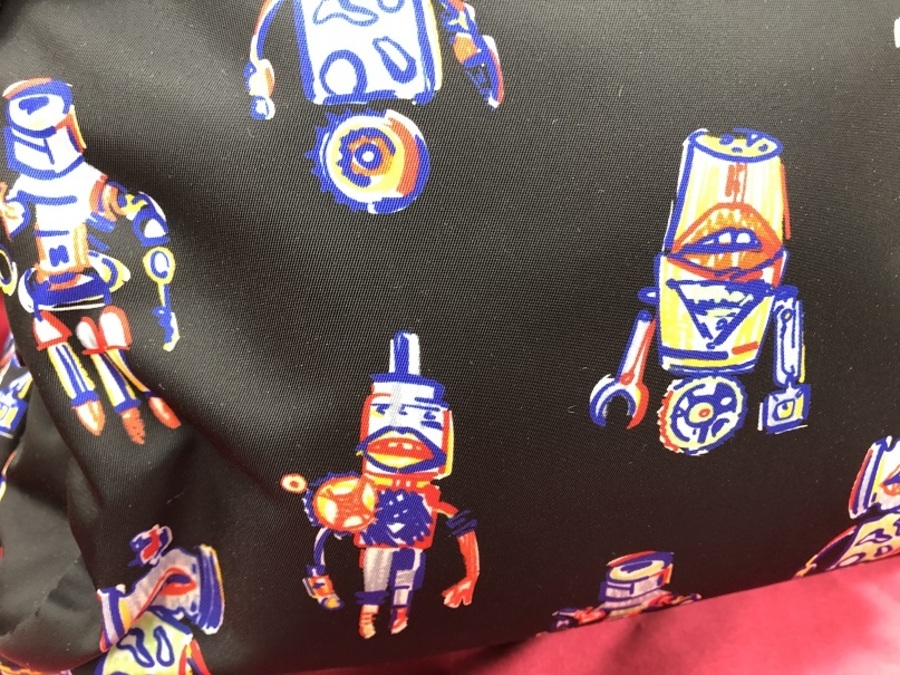 可愛らしいロボットの柄が前面にあしらわれた、