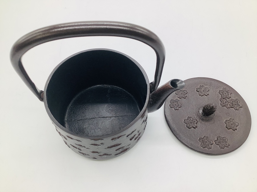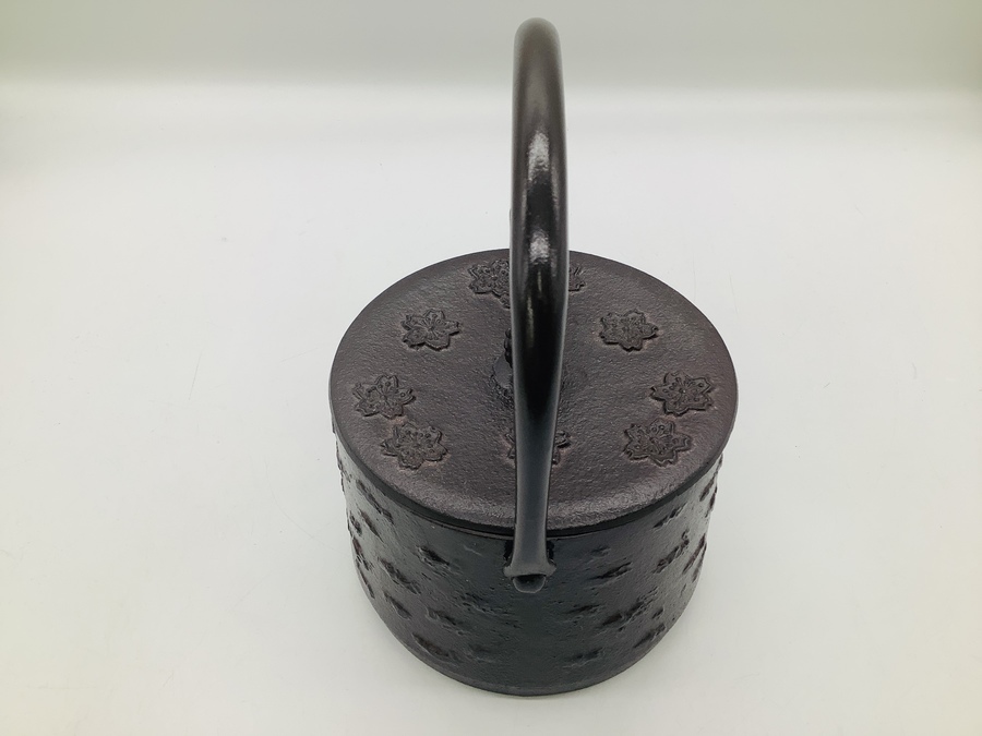 桜柄を使い樺細工をイメージした南部鉄瓶が