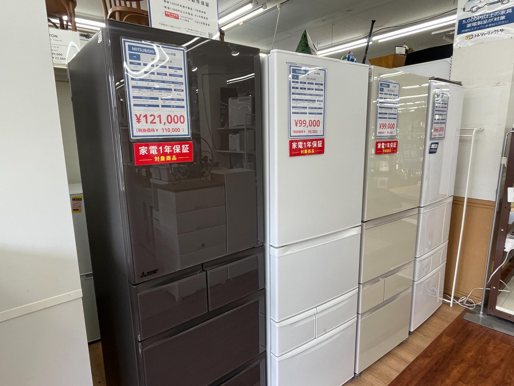 当店では、冷蔵庫を多数展示しております!