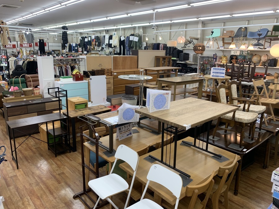 当店では、家具、家電製品、インテリアアイテム、食器など生活に必要なお品物をお手頃価格で多数お取り扱いしております。