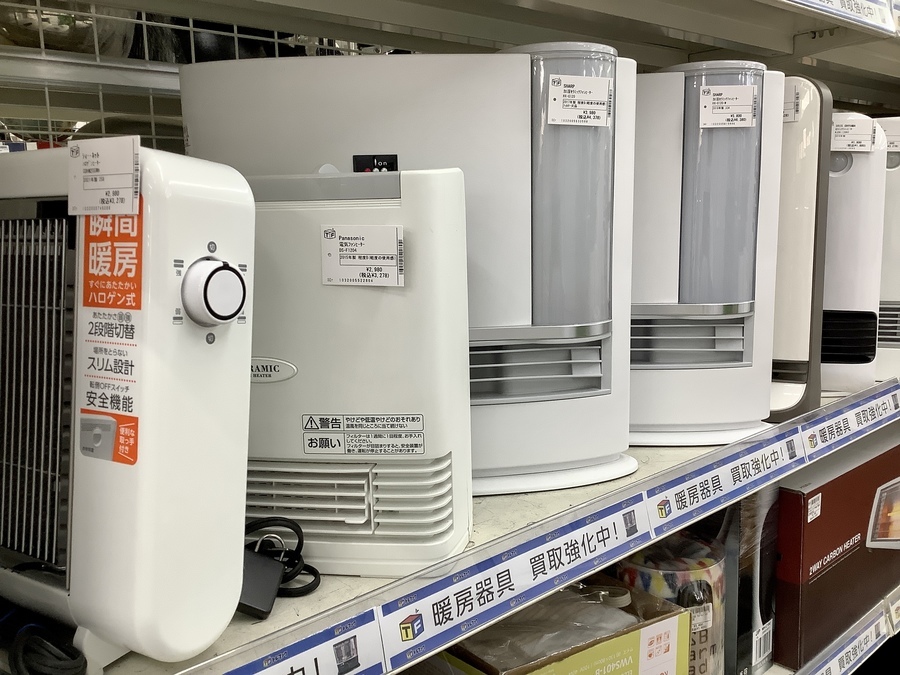 暖房器具大量展示中!ファンヒーターやストーブなど、中古家電はトレファクにお任せください!