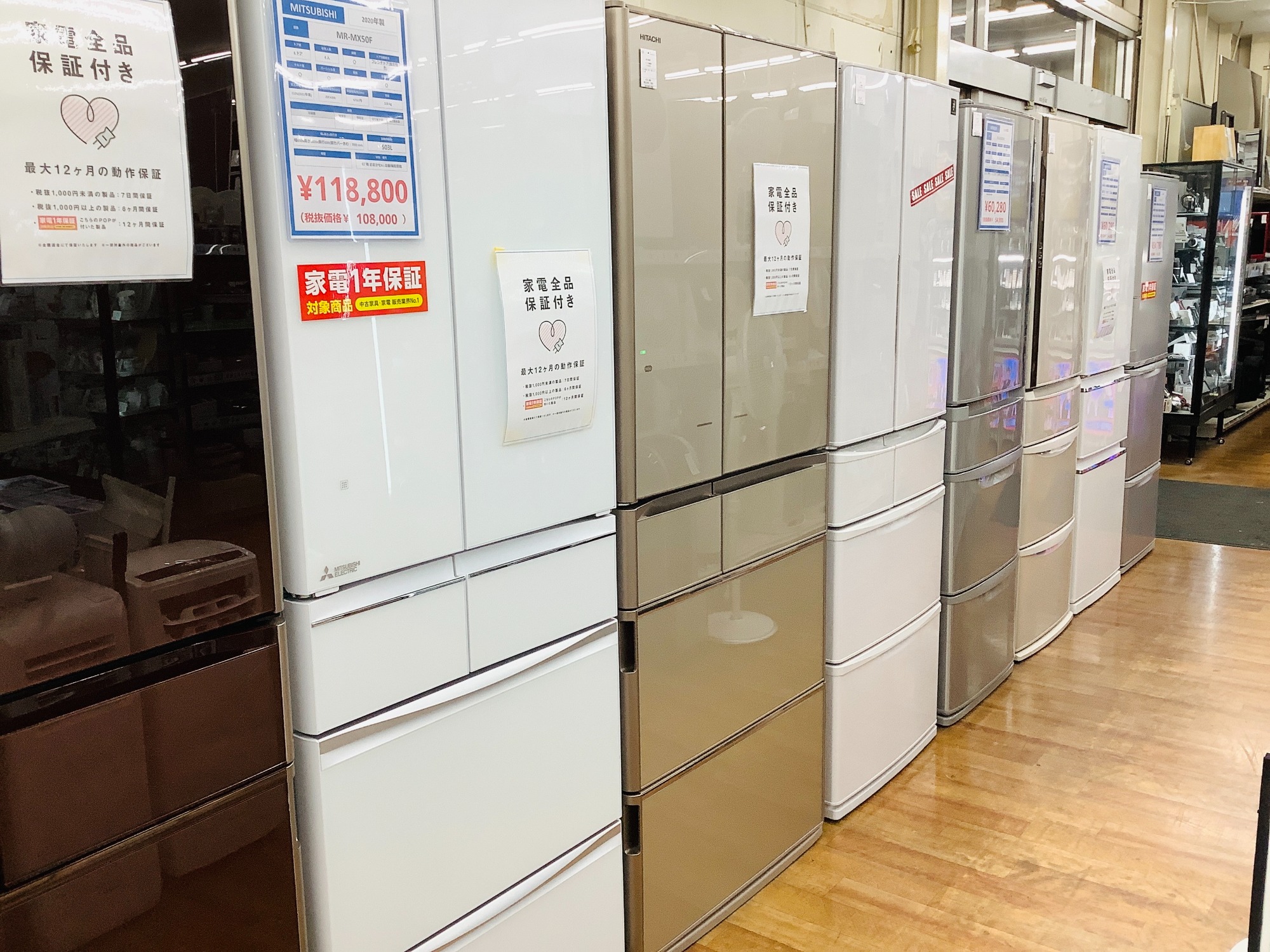 当店では、対象の家電製品に最大で1年間の動作保証をしております。