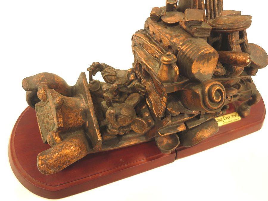 重量感のある銅製で、ミッキー・ドナルド・グーフィーの3キャラが乗っています。