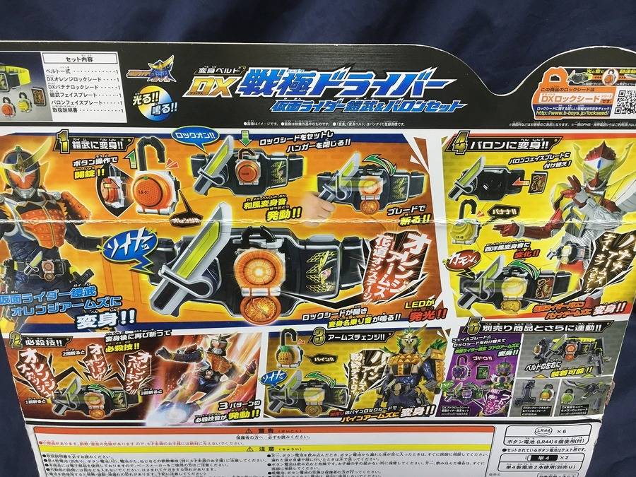 今回入荷の戦極ドライバーは、箱にダメージがありますが中身はほぼ未使用。付属品も全て揃っております。