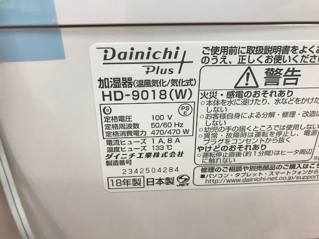 DAINICHIのハイブリット式加湿機が入荷!!【中央林間店】