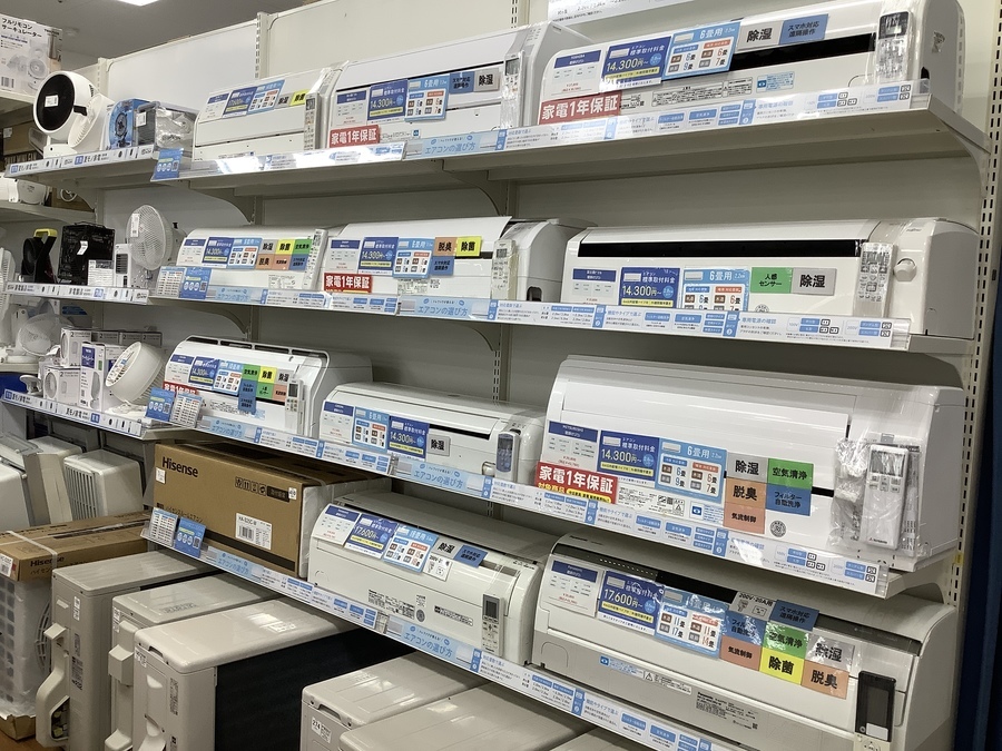 中央林間店では、お店に入ってすぐに!エアコンを数台置かせて頂いております!