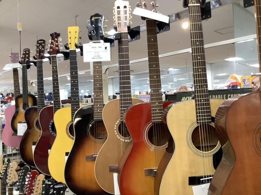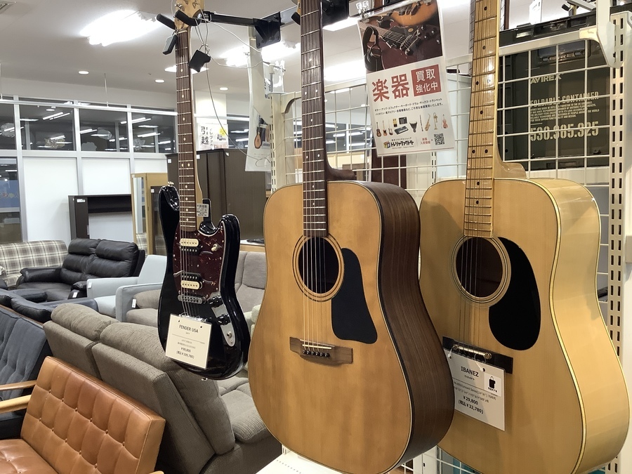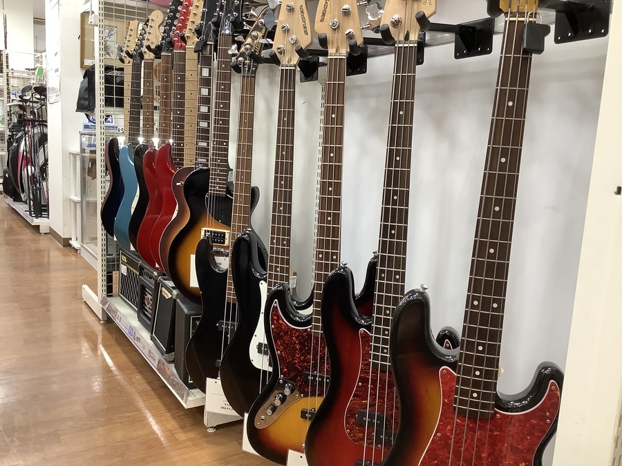 他にもエレキギター、アコースティックギター、エレキベースなどの弦楽器も多数展示中!
