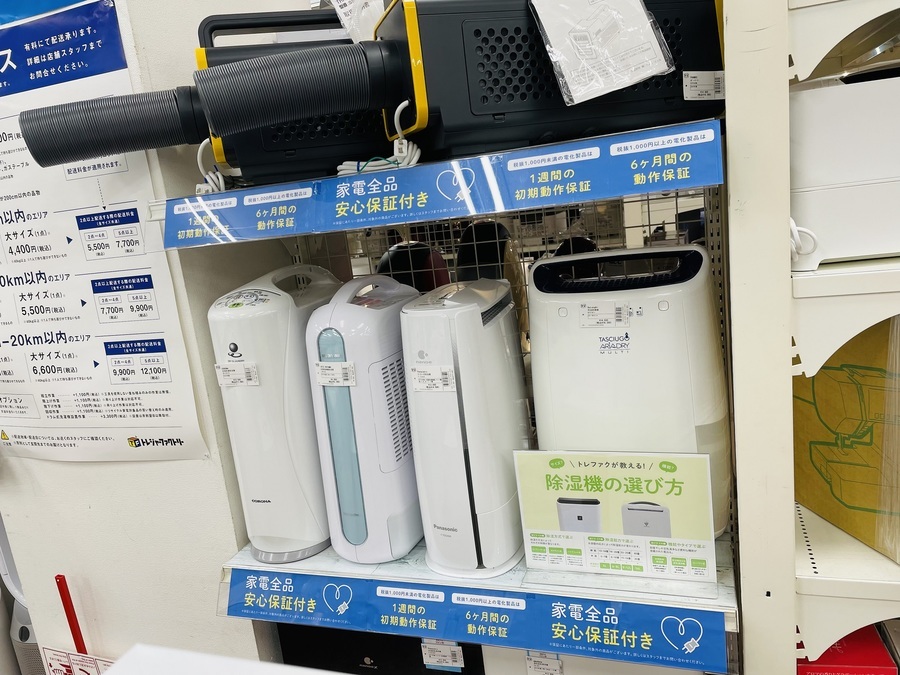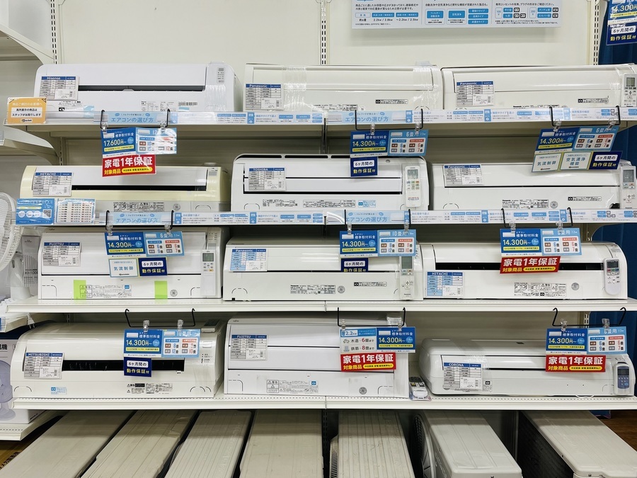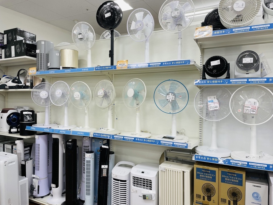 エアコン、扇風機、除湿機などの夏物家電を大量展示中です!