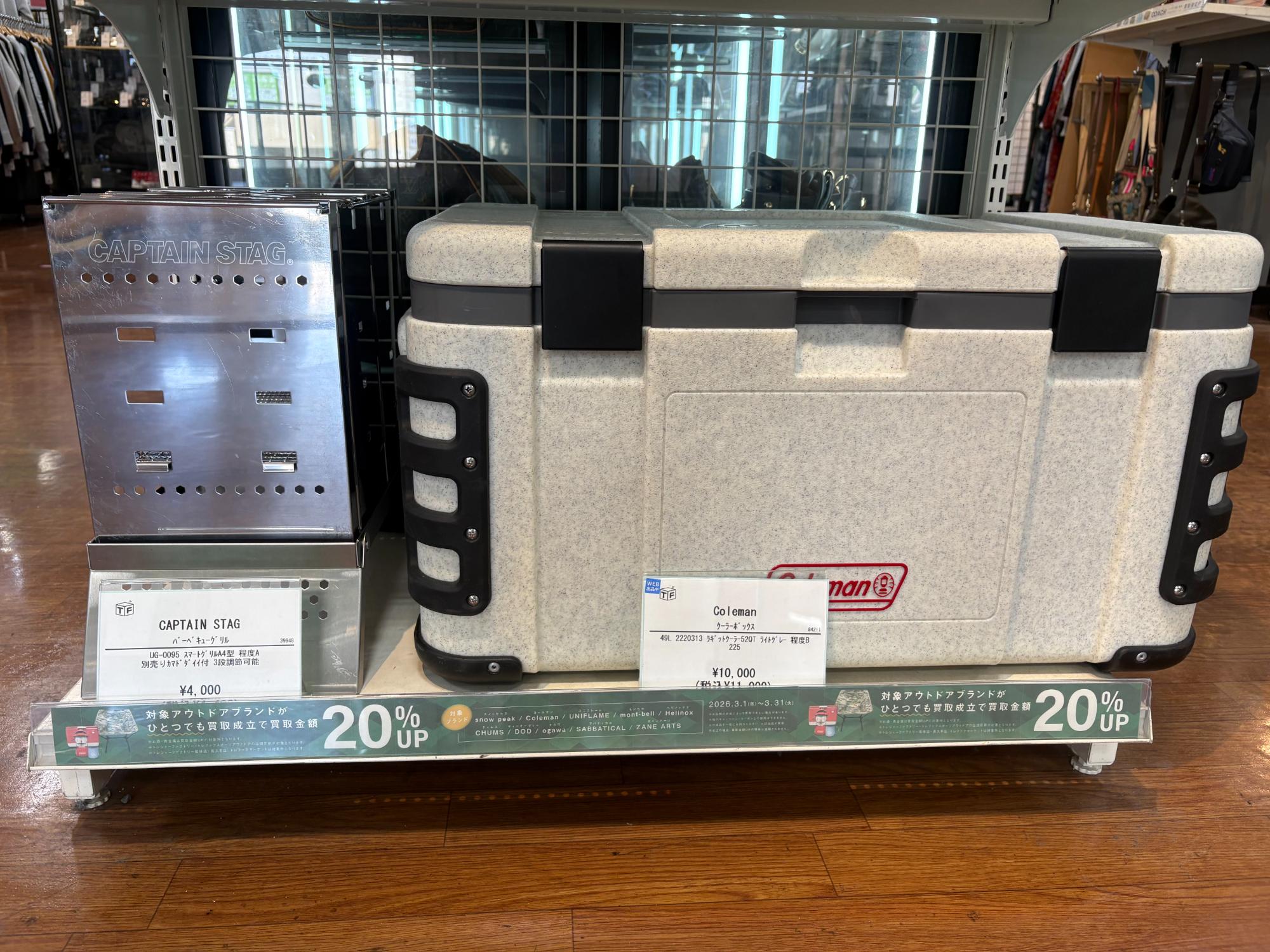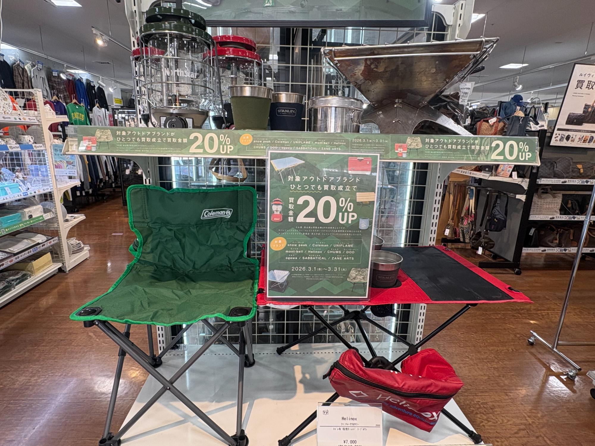 3月はアウトドアブランド買取20%UPキャンペーン!スノーピーク、コールマン、ユニフレームなどのアウトドアブランドはぜひお持ち込みください!