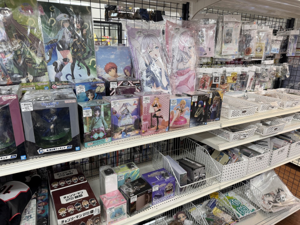 当店自慢と言えば、なんと言ってもフィギュアコーナー!! 鬼滅の刃、呪術廻戦、東京卍リベンジャーズなど大ブーム中のホビーや 世代問わず人気のワンピースまで、幅広く展示しております!! もちろんフィギュアだけでなく、 缶バッジ・キーホルダー・ぬいぐるみなども豊富に取り揃えておりますので 是非一度当店までお確かめくださいませ!!