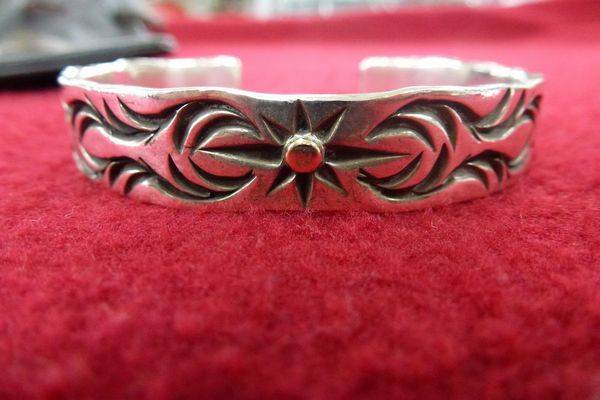SUN(太陽)をモチーフとしたデザインで、太めのバングルは存在感抜群です。