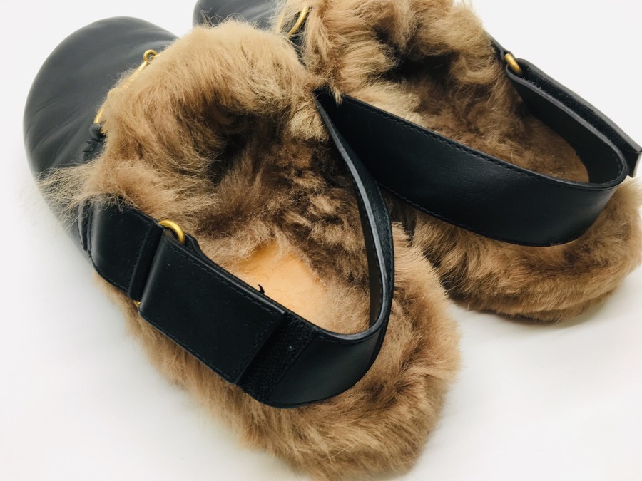 グッチを象徴するホースビット、バックストラップがついたファースリッパとなっております。