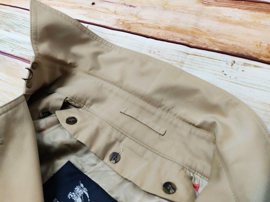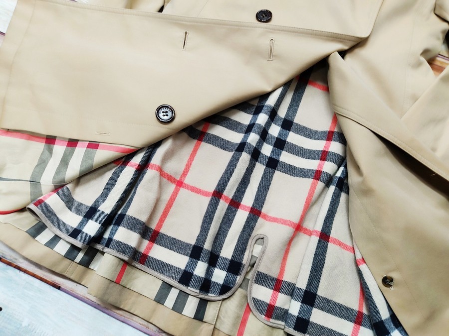 こちらは定番のトレンチコートをベースに襟裏がバーバリーチェックで切り替えられたお品物となっております