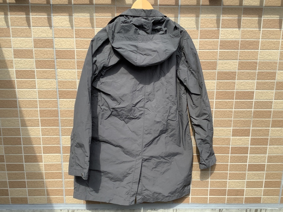 撥水性があり、取り外し可能なフードを付ければ急な雨もOK!フードを外せばシンプルなステンカラーになります!