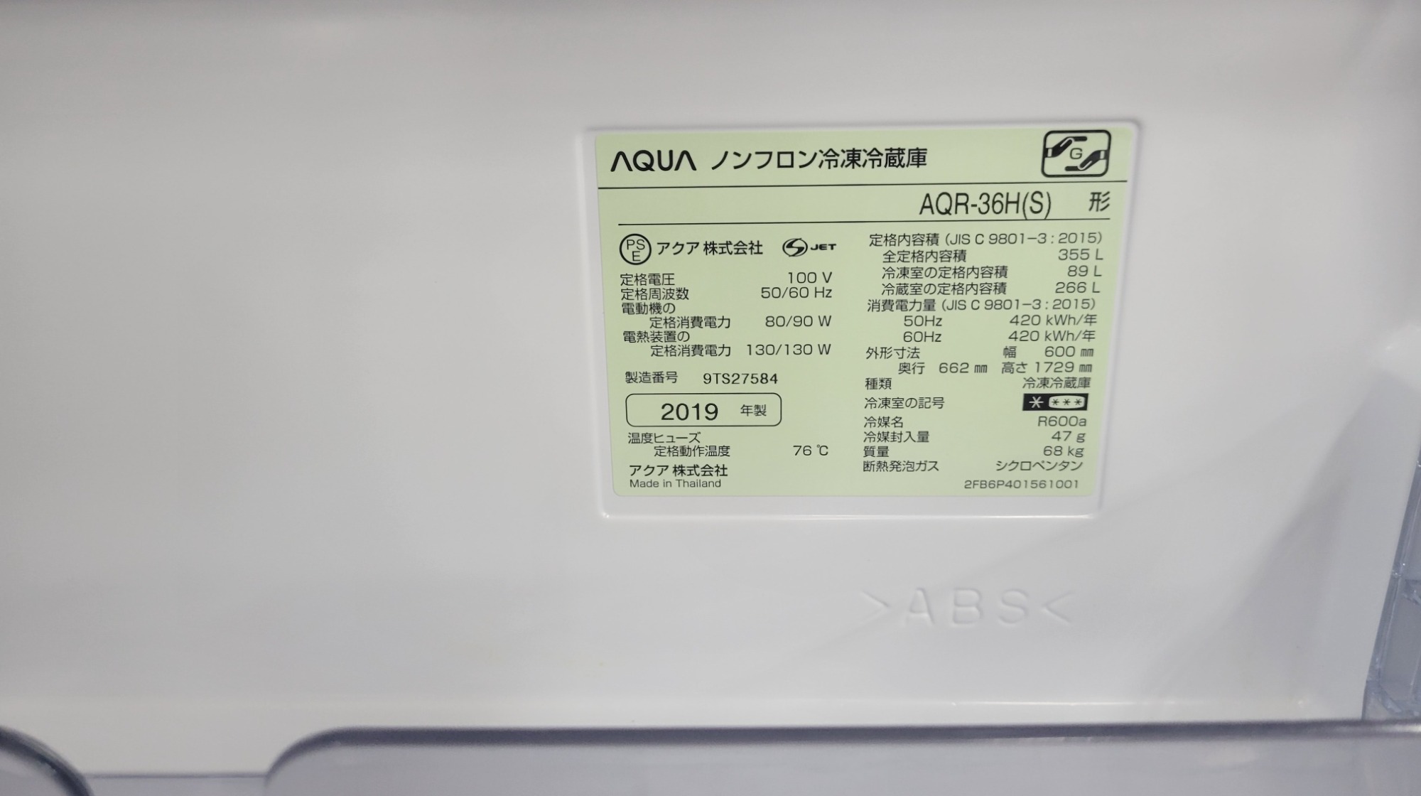 型番 :AQR-36H
