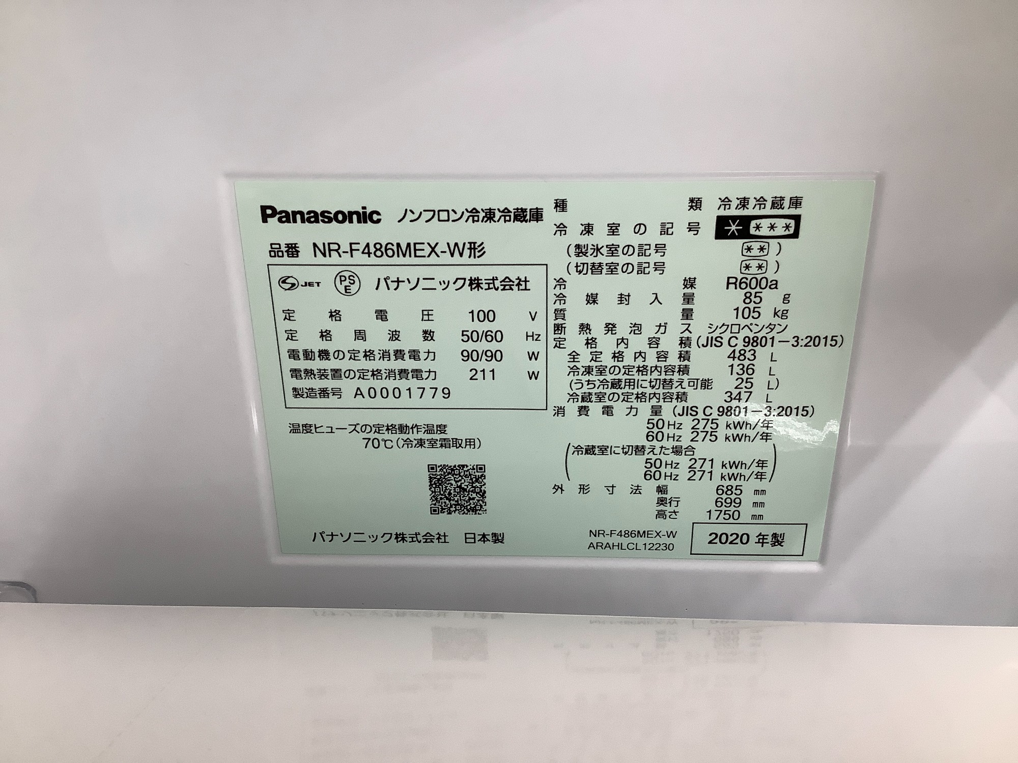 型番:NR-F486MEX-W