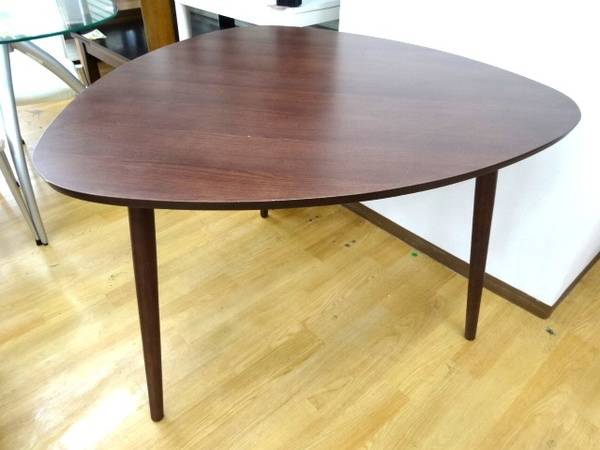 テーブルは脚が3本の丸みを帯びた三角形の形。