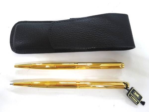 こちらシャープペンとボールペン、そしてレザーのケースの3点セット。