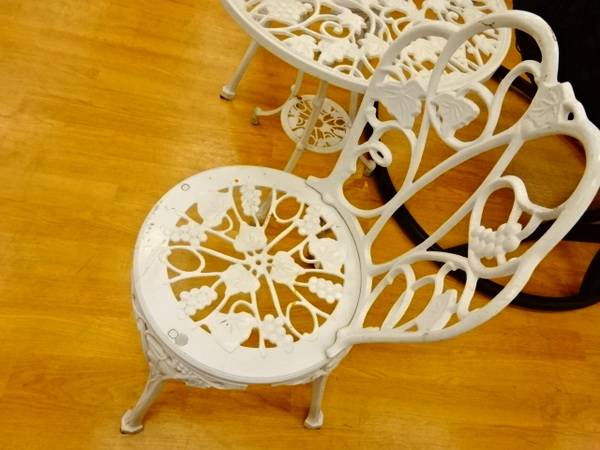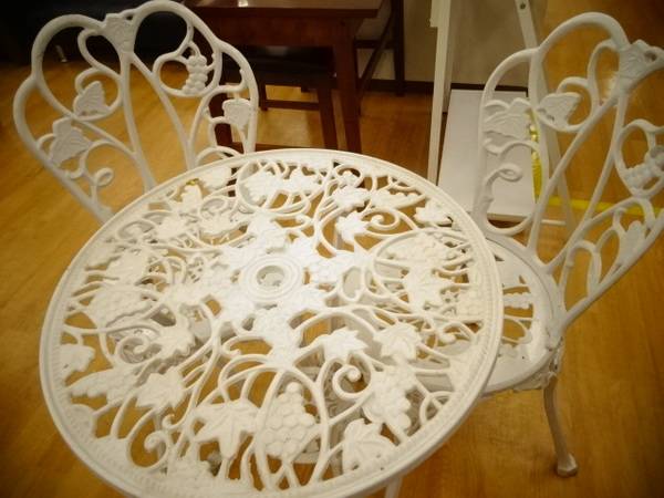 今回はホワイトのガーデンテーブルセットの入荷です!