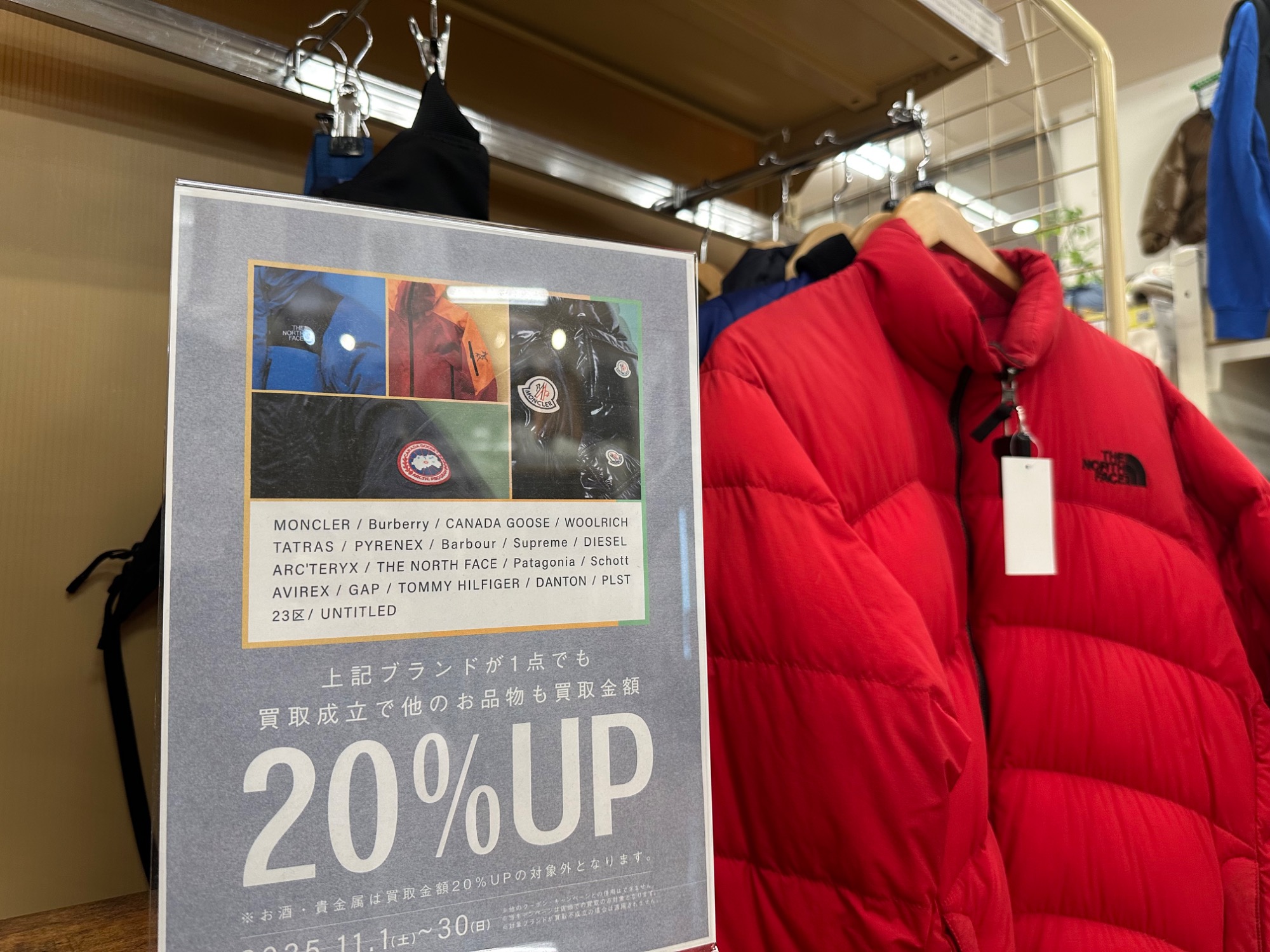 11月はブランド20選買取20%UPキャンペーン!モンクレールやバーバリーなど、ぜひお持ち込みください!
