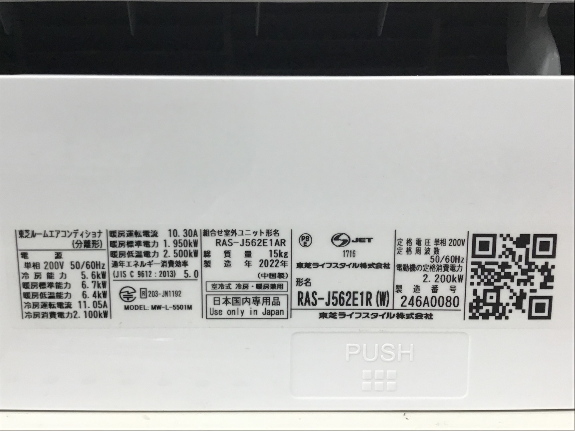 型番 : RAS-J562E1AR