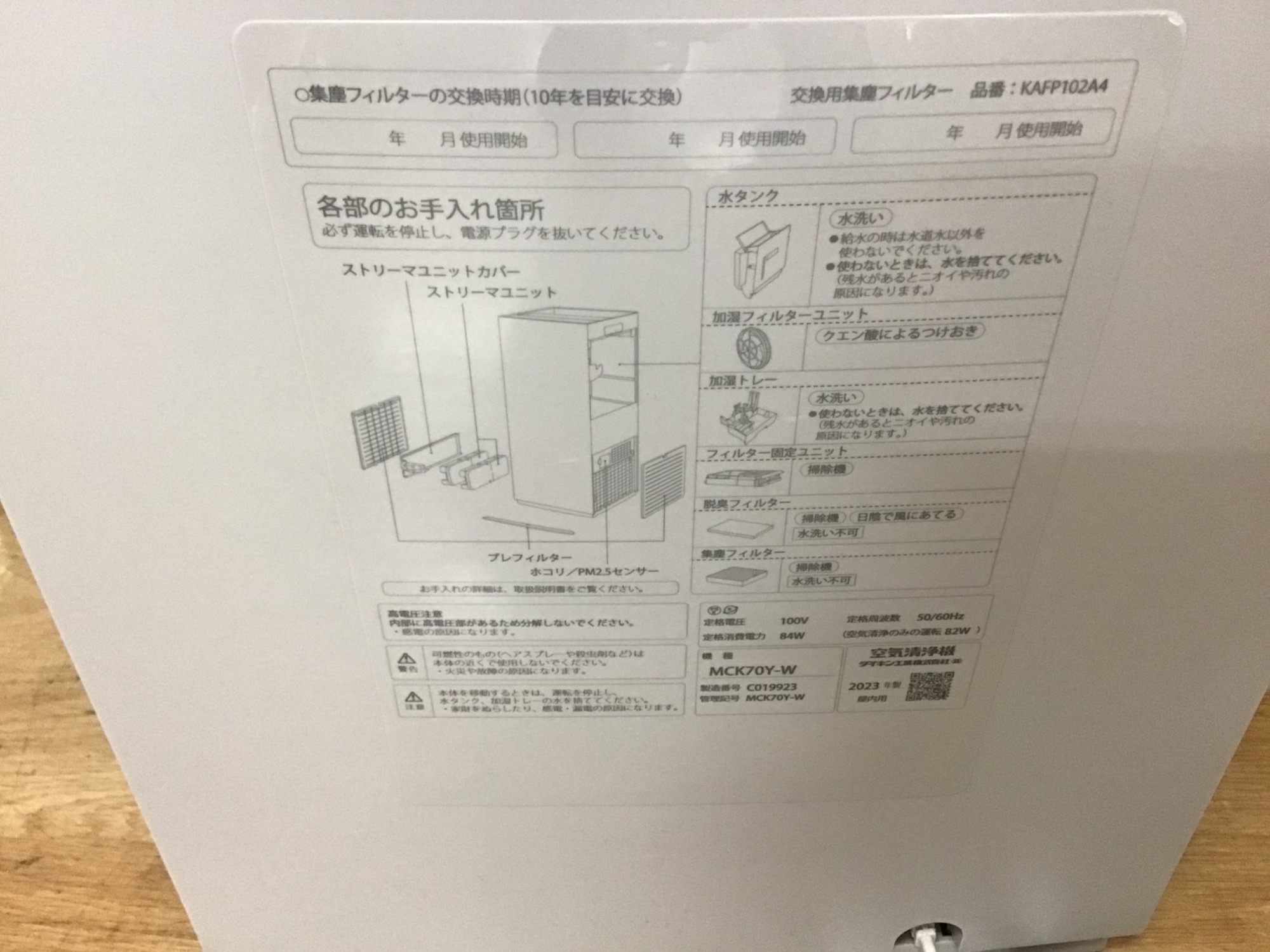 型番 : MCK70Y-W