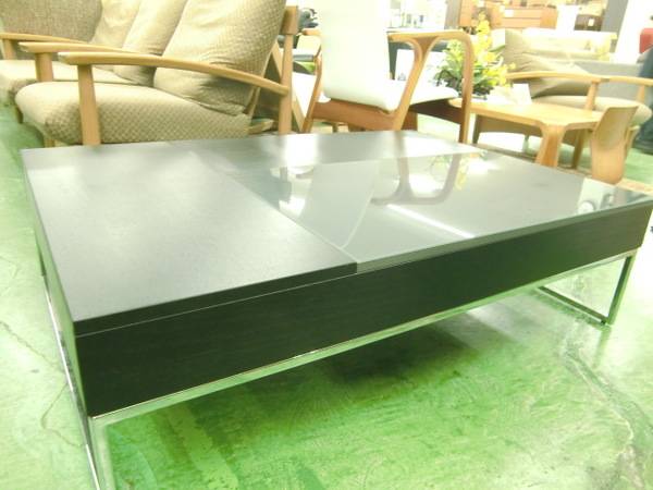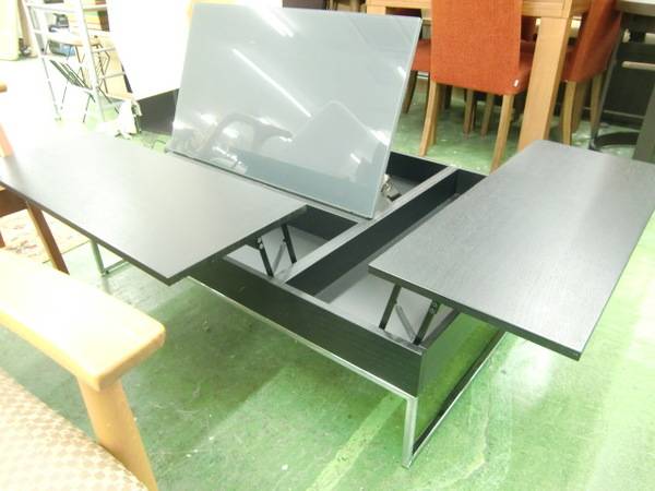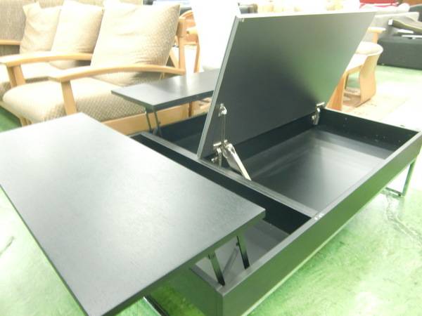 天板が3分割で跳ね上がり、中は収納となっております!