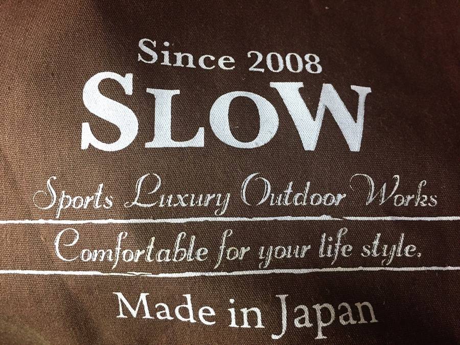 「SLOW」というブランドネームはブランドの世界観を形成する、「S」PORT「L」UXURY「O」UTDOOR「W」ORKのイニシャルに由来し、移り変わりの激しい時代に流されずにゆっくり創作を追及したいというモノ創りのスタンスを示しています。