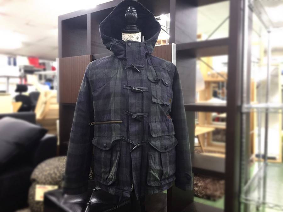 表地にはMillerain社の中でも抜群の雰囲気を醸し出すブラックウォッチ柄のオイルド生地を使用し、裏地の平織りコットンとの間には、防寒性をより高める為に薄めの中綿が内蔵されています。