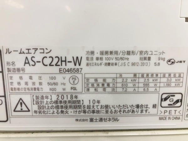【富士通ゼネラル】2018年製のエアコン入荷いたしました!!【練馬店】