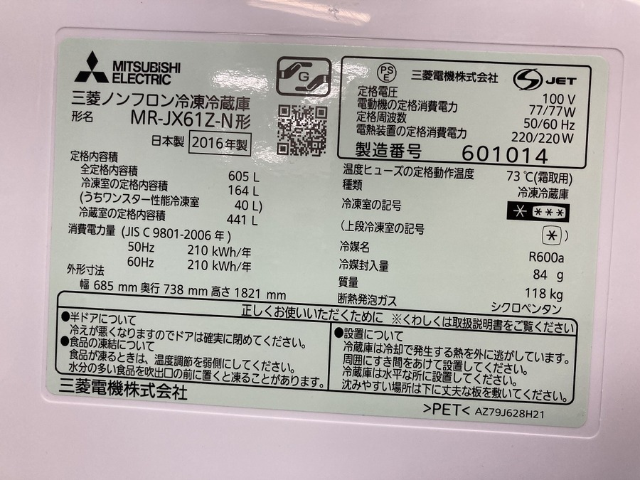MITSUBISHI (三菱)の6ドア冷蔵庫(MR-JX61Z)のご紹介です!