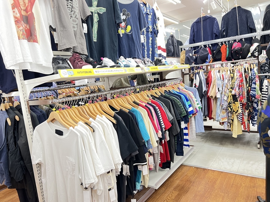 1階の衣類コーナーではノーブランドから人気ブランド、トレンドアイテム、定番アイテム、着まわしアイテムなどなど充実の品揃えが自慢です!