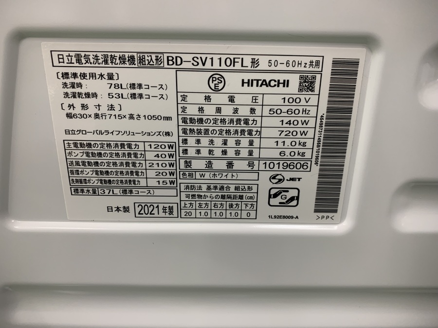 HITACHI(日立)のドラム式洗濯乾燥機(BD-SV110FL)のご紹介です!