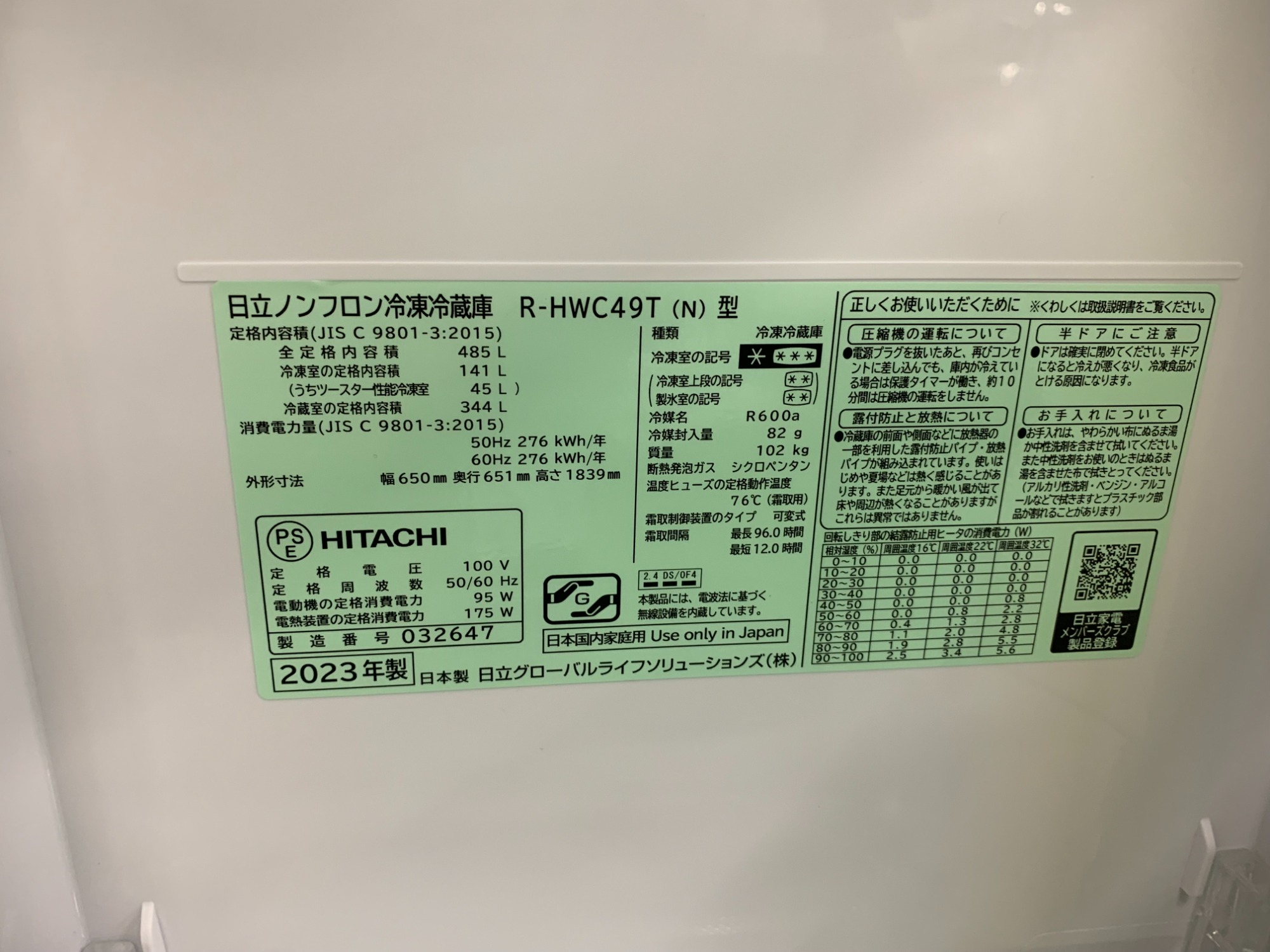 日立6ドア冷蔵庫R-HWC49T買取入荷しました!