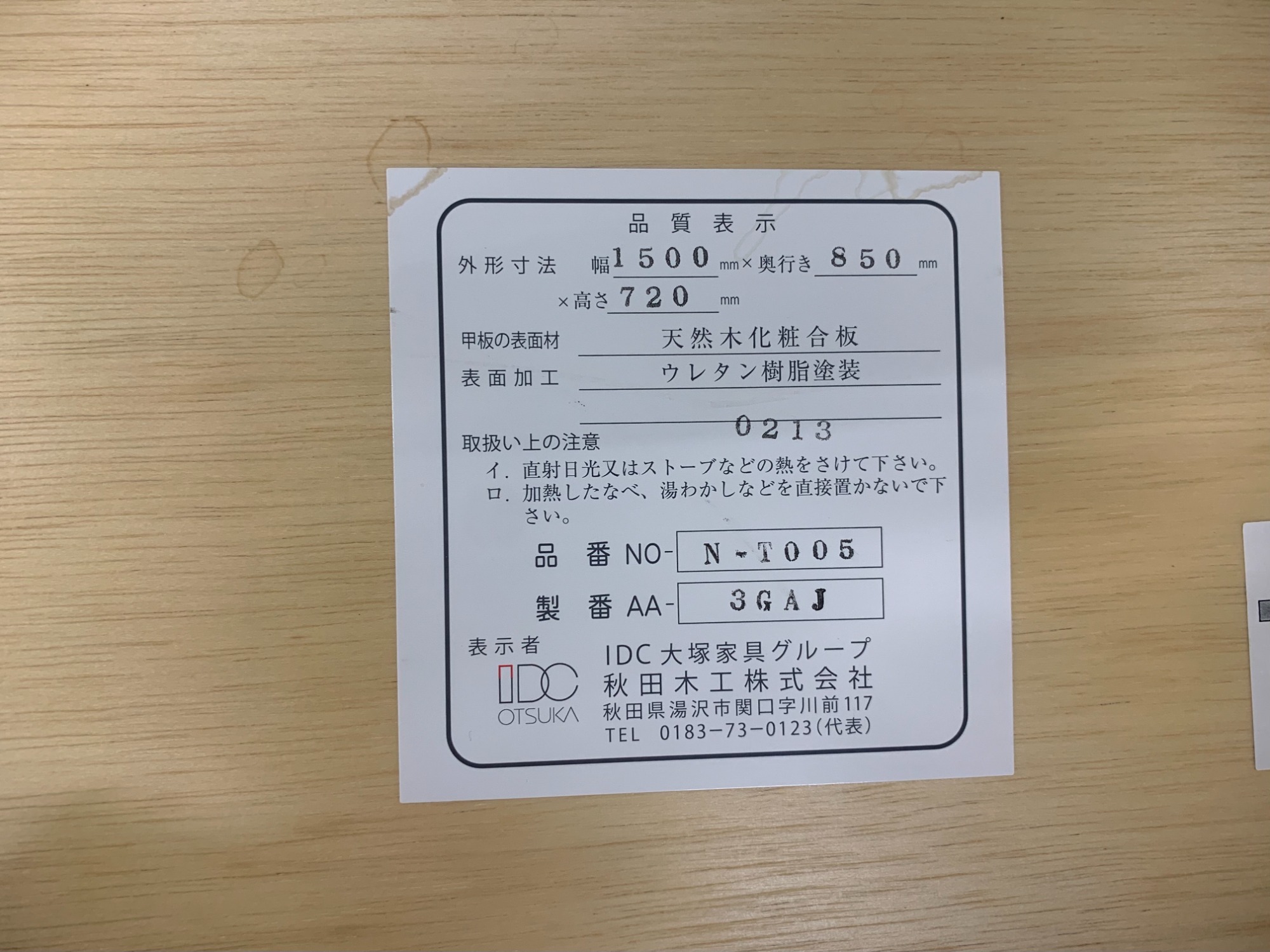 メーカー:秋田木工