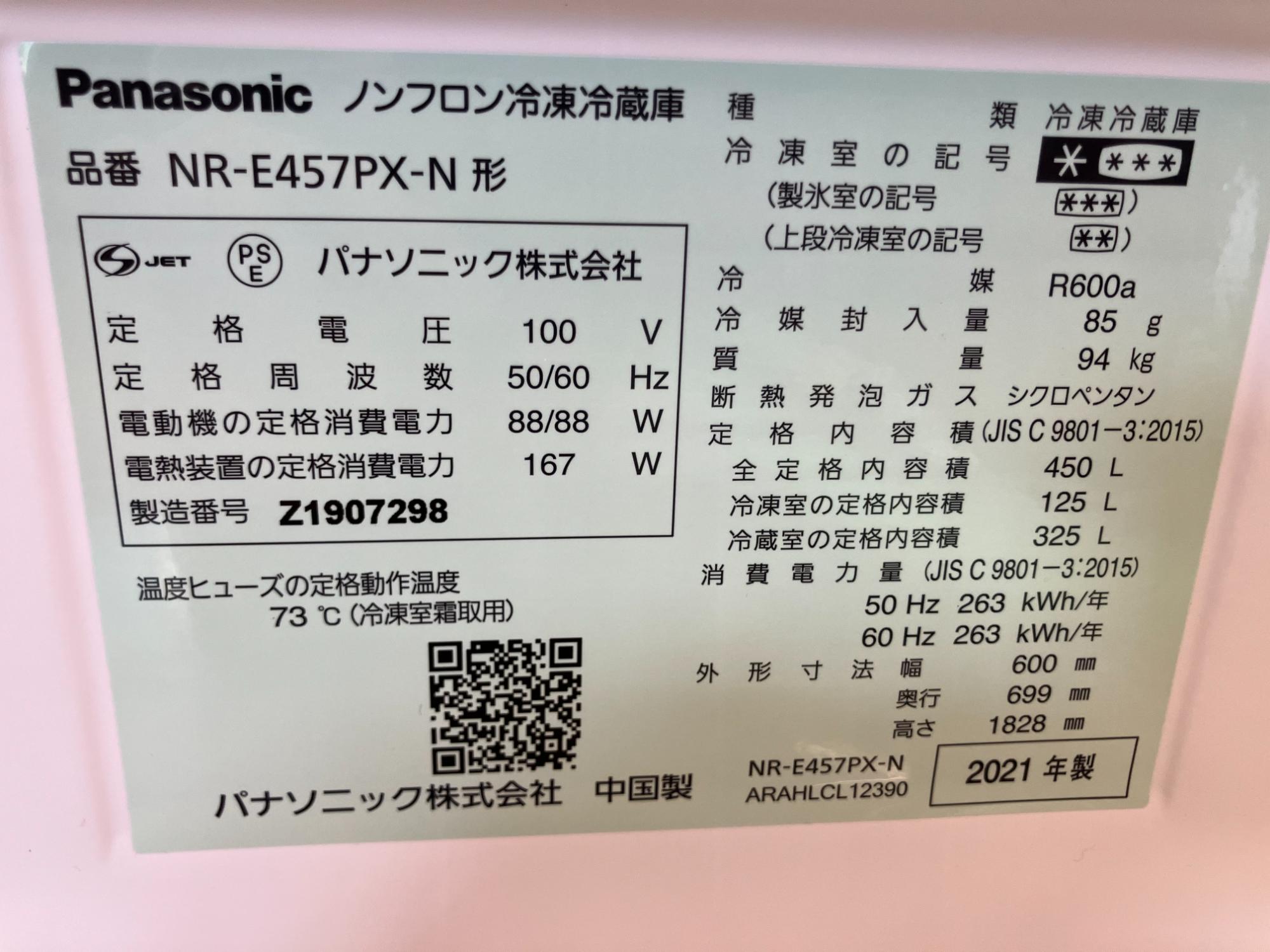 Panasonic5ドア冷蔵庫NR-E457PX-Nのご紹介です!