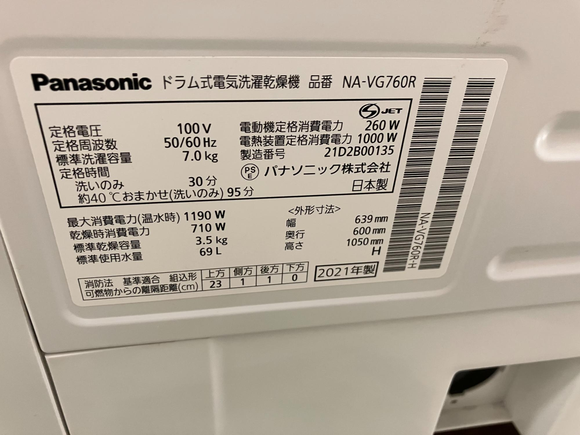 Panasonic ドラム式洗濯乾燥機 NA-VG760R 買取入荷しました!