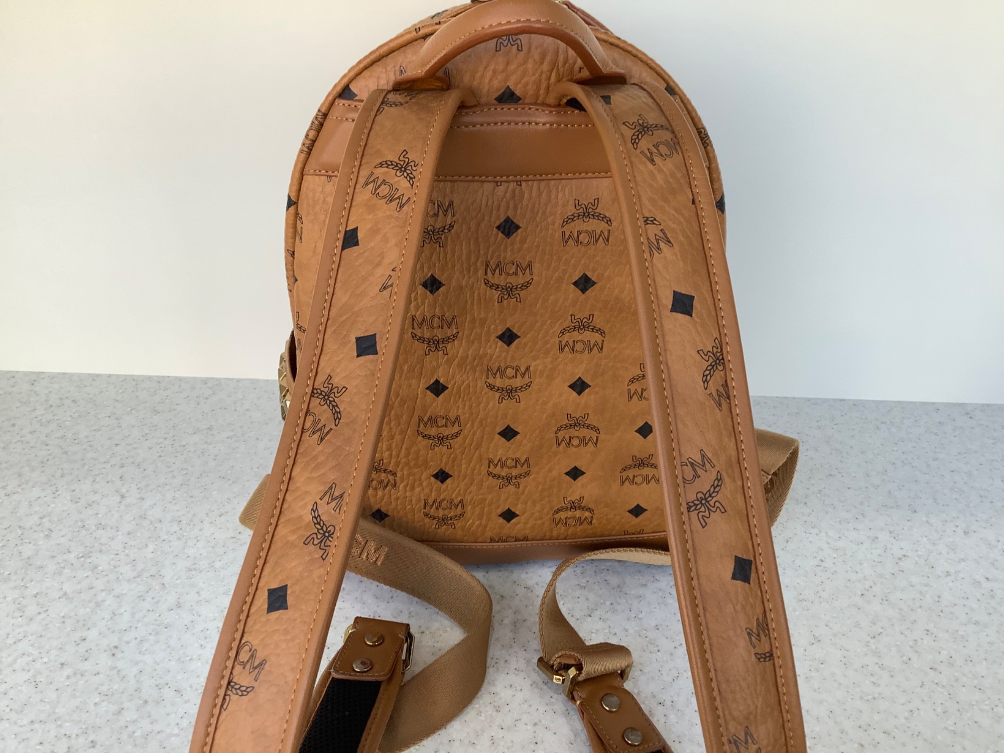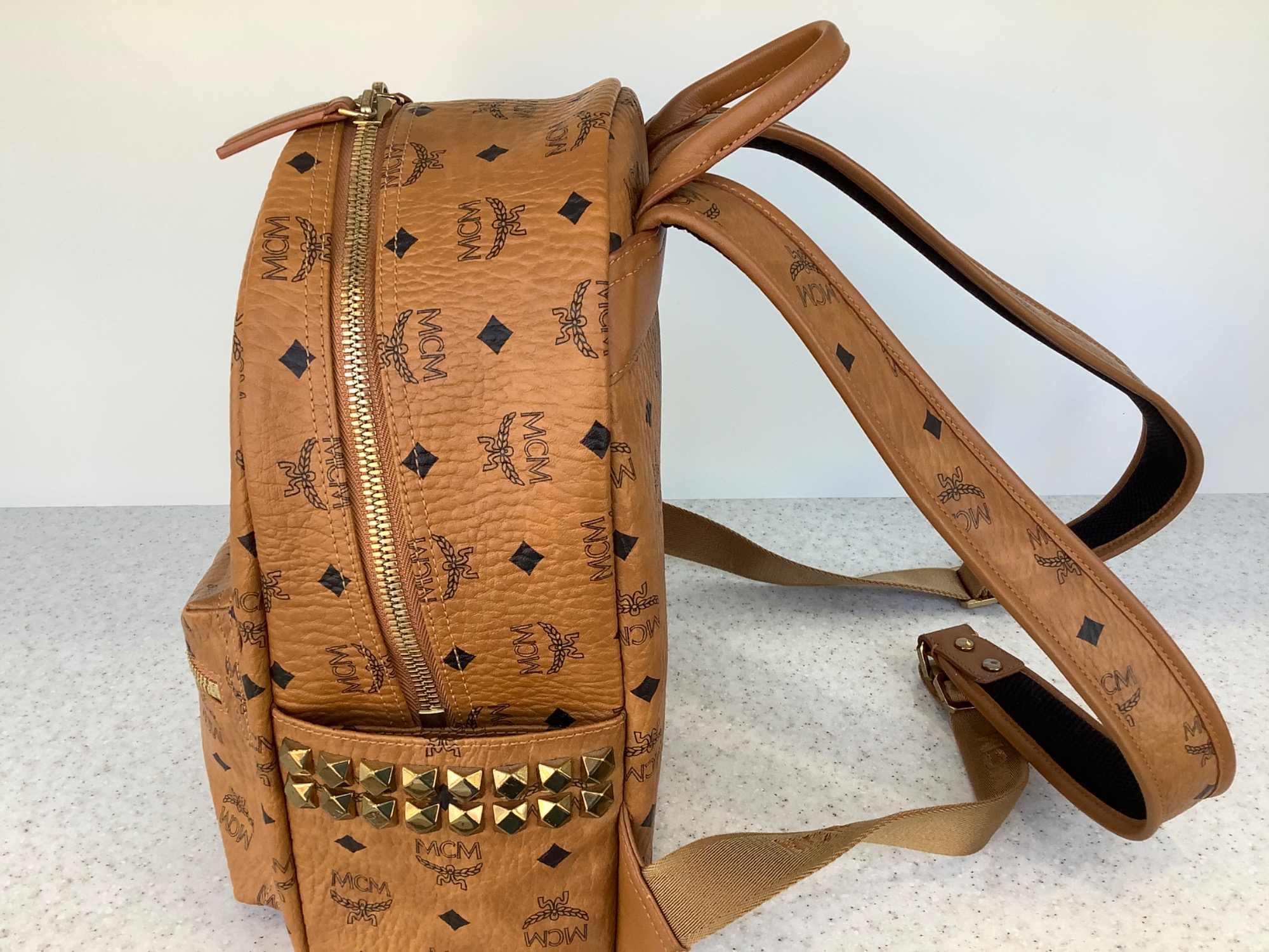 MCMの定番ロゴ柄人気のリュックです。