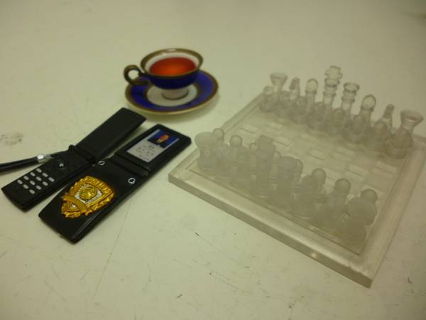 ティーカップ&ソーサー ・ティポット ・紅茶注ぎ再現パーツ ・携帯電話 ・警察手帳 ・腕時計 ・チェスなど雰囲気を盛り上げるアクセサリーが豊富に付属しています。