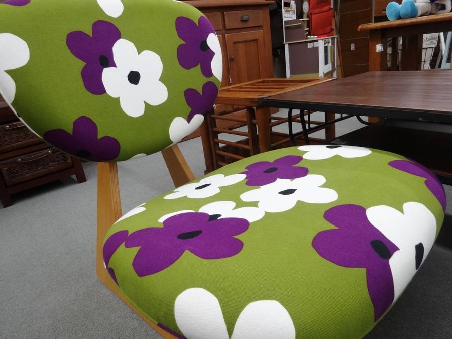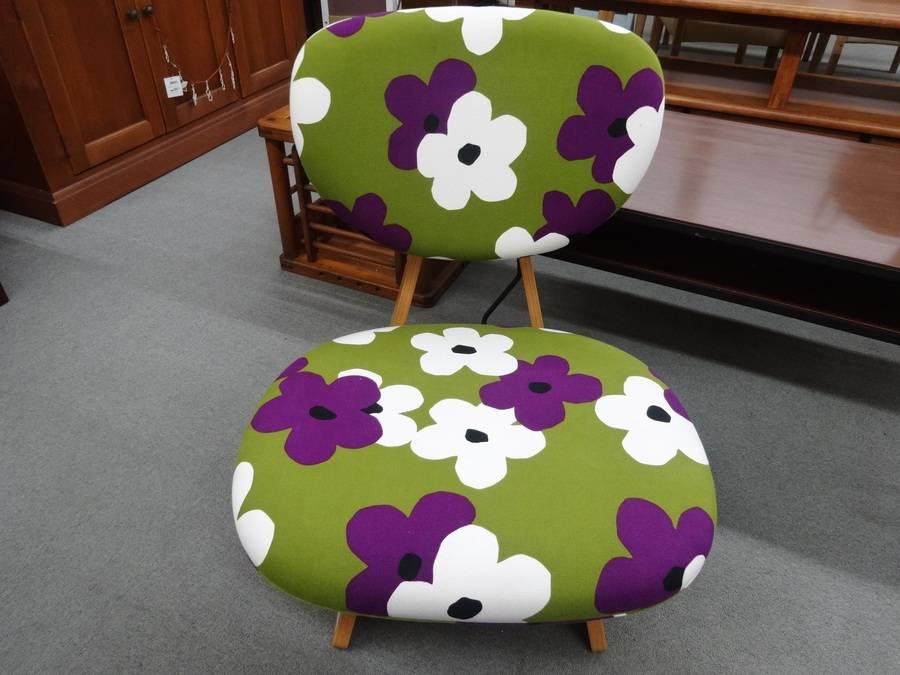 丸みを帯びたフォルムに木製の足が可愛らしさを引き立てています。