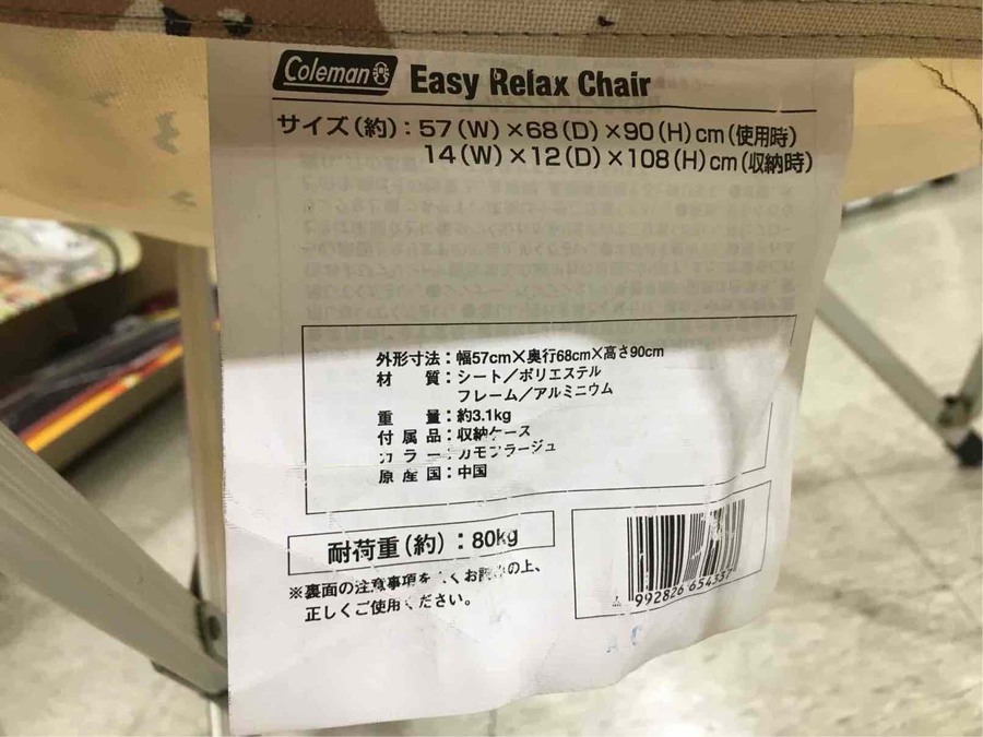 アウトドア用品のColemanColemanのリラックスチェアリラックスチェアの買取買取の秦野秦野19年03月01日:画像6