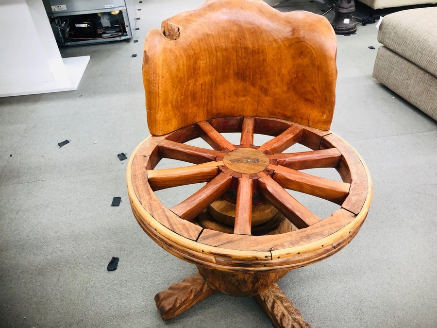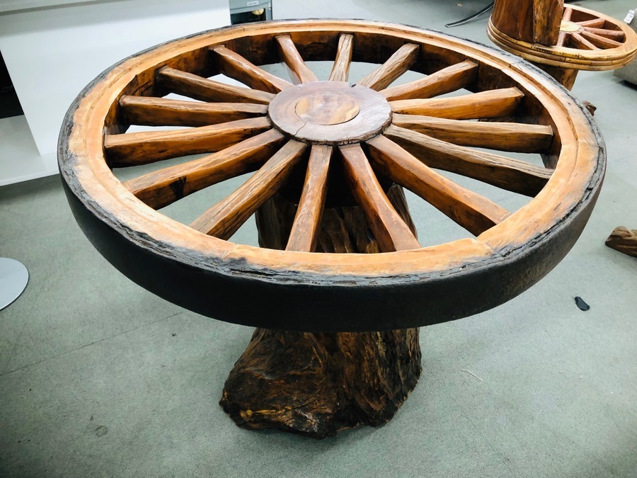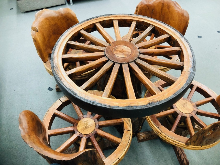 無垢材の車輪型ダイニングセット!