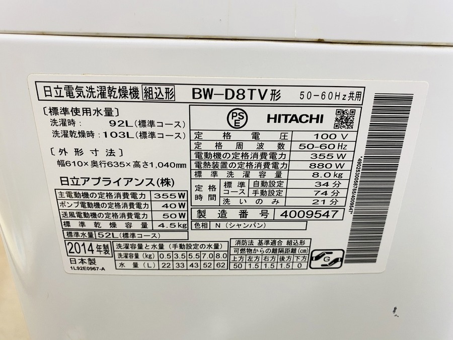 【HITACHI/ヒタチ】の8.0kg洗濯乾燥機を買取入荷!!