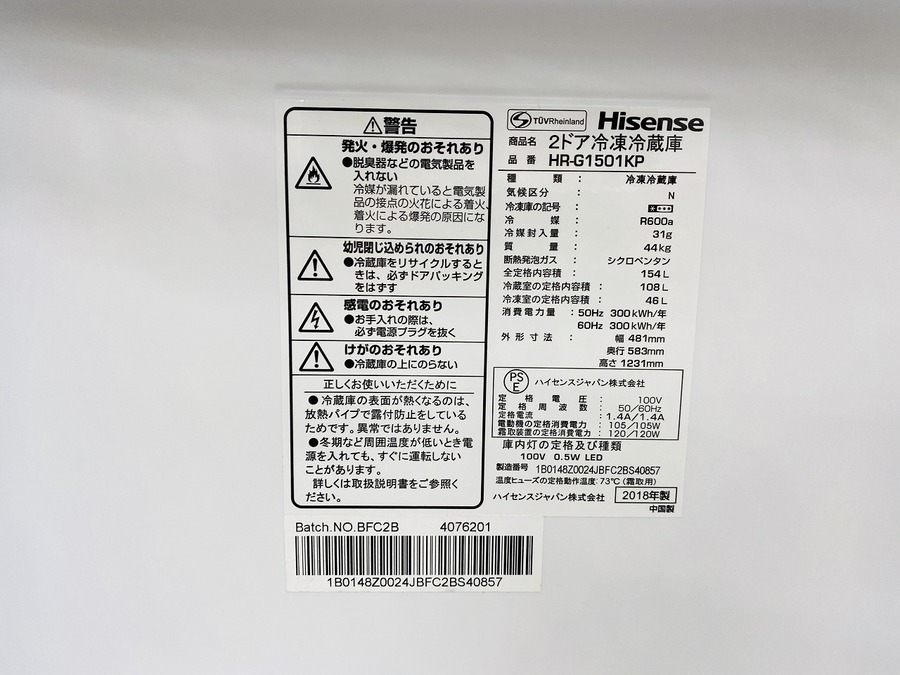 2018年製【Hisense/ハイセンス】の可愛い2ドア冷蔵庫を買取入荷!!