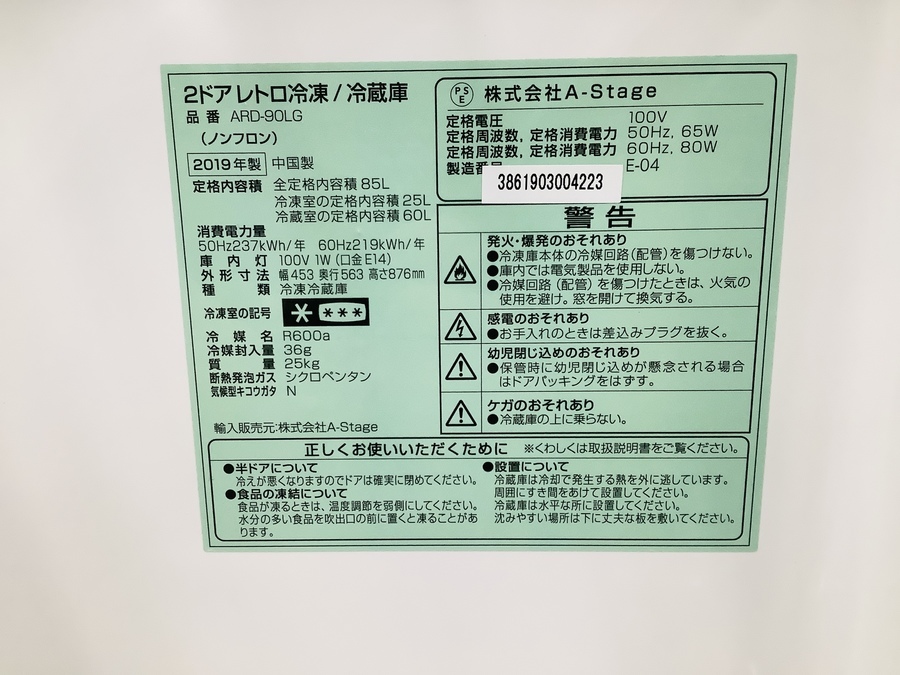 【A-Stage/エーステージ】2ドア冷蔵庫を買取入荷致しました!【秦野店】