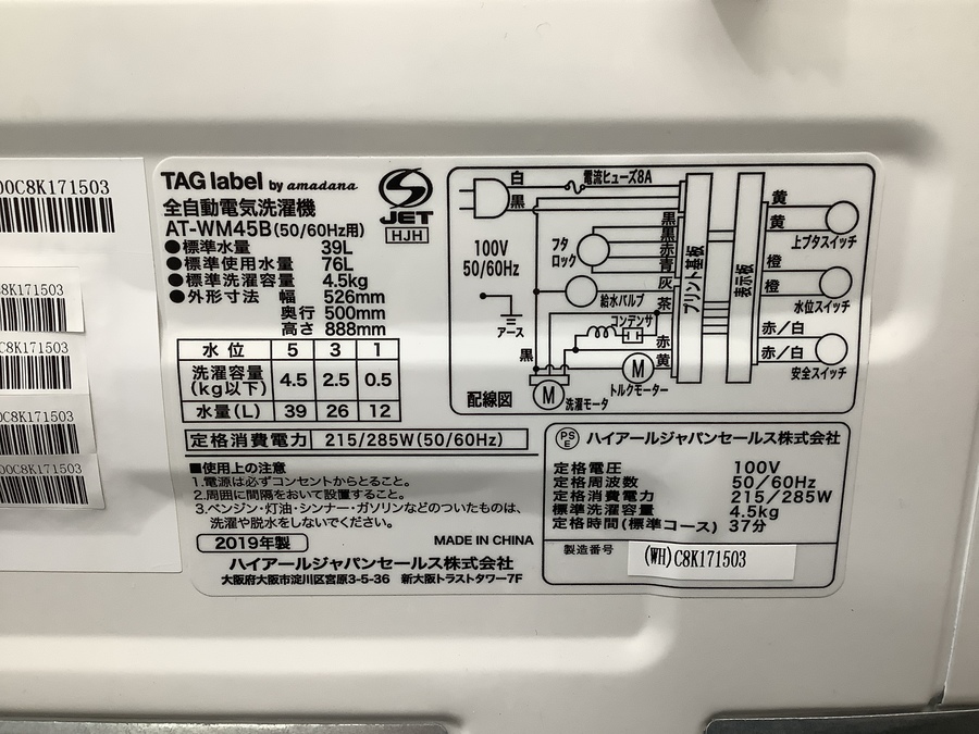【TAG label/タグレーベル】2019年製全自動洗濯機を買取入荷致しました!【秦野店】