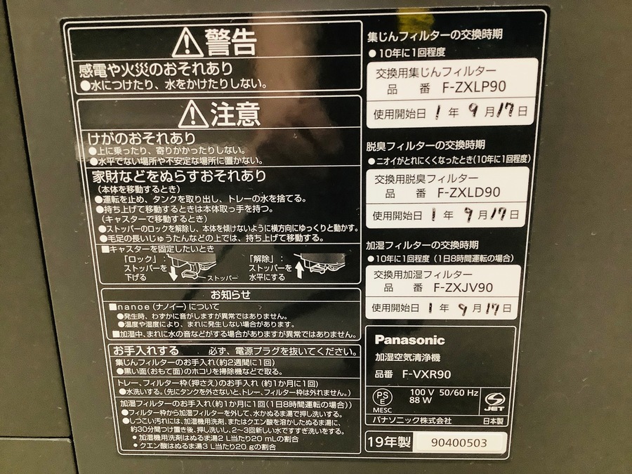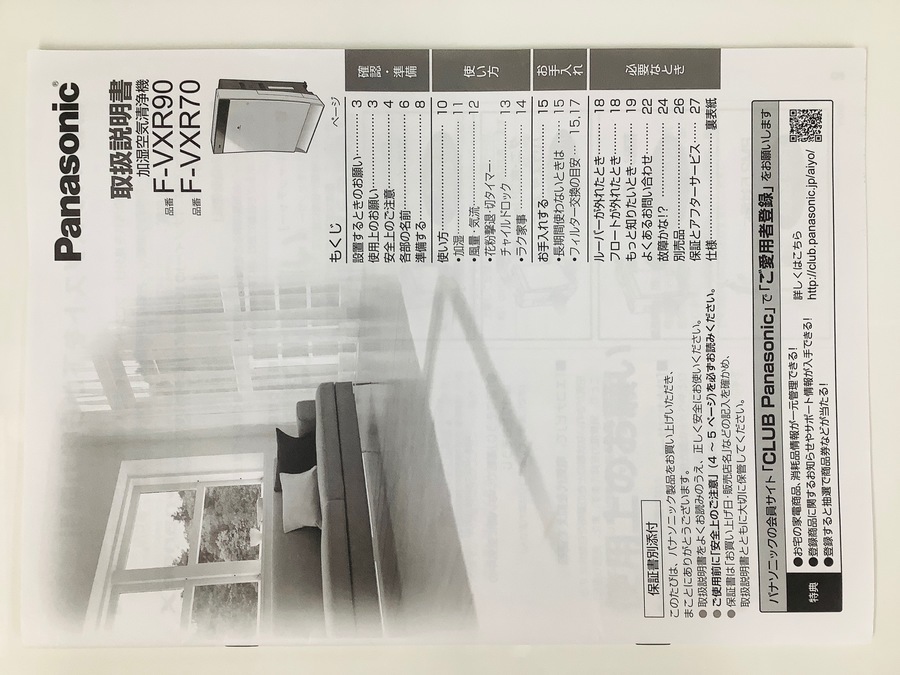 Panasonic(パナソニック)加湿空気清浄機(F-VXR90)入荷致しました!!