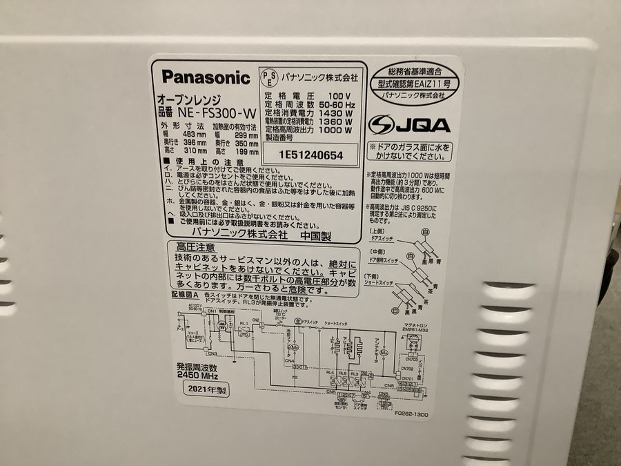 Panasonic(パナソニック)オーブンレンジ(NE-FS300-W)が入荷致しました!!
